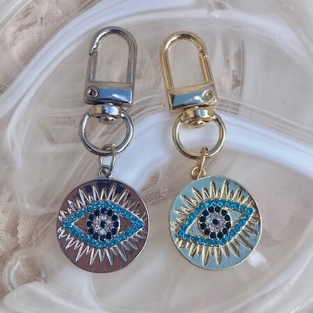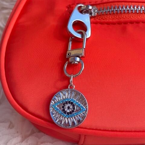 This stylish evil eye charm is the perfect gift or accessory to warn of bad energy. Ideal use as a keychain, charm or bag accessory.